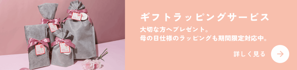 - 利用方法:ご希望のラッピング商品をカートに入れた後、「ギフトラッピングサービス」の【母の日ラッピング】(4/15~5/12) を選択のうえ、ご購入ください。